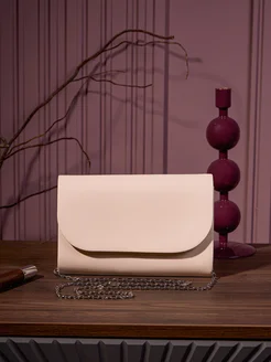 Клатч вечерний бежевый с цепочкой на плечо свадебный