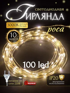 Гирлянда роса с вилкой в розетку на маленькую елку 10 метров