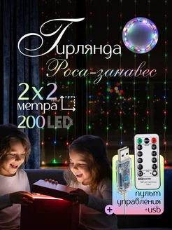 Гирлянда штора роса 2х2 разноцветная на окно с пультом usb