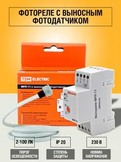 Фотореле с выносным фотодатчиком и проводом 1м на DIN-рейку