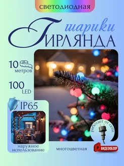 Гирлянда новогодняя уличная на елку шарики 100 лампочек 10м
