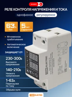 Реле контроля напряжения и тока однофазное регулируемое 63А