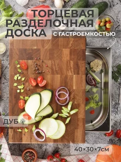 Торцевая разделочная доска из дуба с контейнером 40x30x7