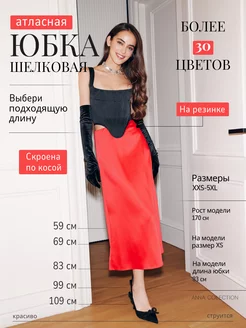 Юбка зимняя, атласная плотная, шелковая на резинке