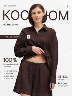Летний костюм -пижама с шортами из муслина домашний оверсайз
