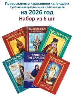 Православные карманные календари на 2026 год. Набор из 6 шт