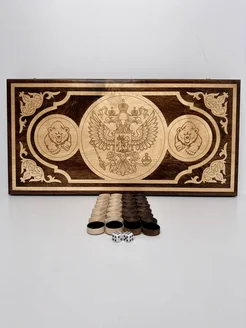 Нарды Деревянные Резные 3в1 "Герб России" большие 60см
