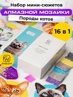 Мини набор алмазной мозаики MINI GEMS Породы котов 16шт