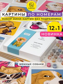 Мини набор картин по номерам MINI GEMS Мемные собаки 12шт
