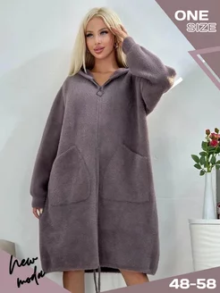 Кофта теплая оверсайз на молнии с капюшоном зипка