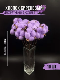 Хлопок сухоцвет для декора 30 см. сиреневый