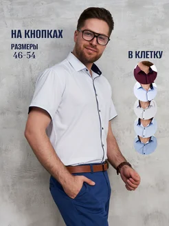 Рубашка в мелкую клетку на кнопках с коротким рукавом