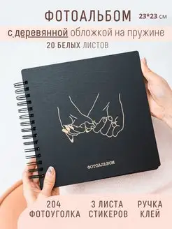 Фотоальбом семейный с деревянной обложкой на пружине