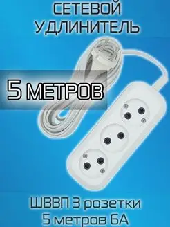 Удлинитель бытовой, 3 розетки, 5м, белый