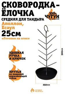 Чугунная сковородка-ёлочка Средняя диаметр 25см