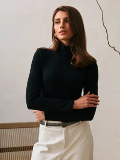 Тонкая черная водолазка с горлом под пиджак хлопок