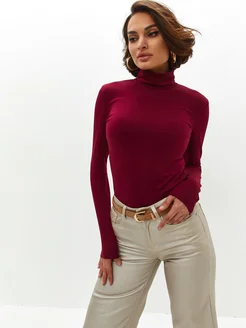 Тонкая бордовая водолазка с горлом под пиджак хлопок