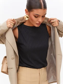 Топ майка базовая лапша в рубчик под пиджак лодочка