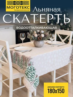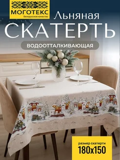 Скатерть новогодняя на стол 180*148 ЛЕН прямоугольная
