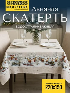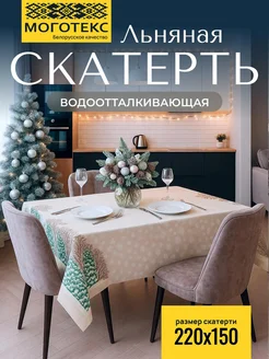 Скатерть новогодняя на стол 220*150 ЛЕН прямоугольная