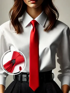 Галстук классический красный на кнопке 48 см