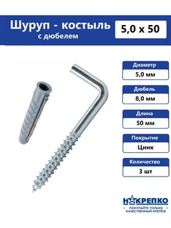 Шуруп-костыль 5х50 мм с дюбелем 8, 3 шт