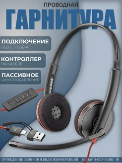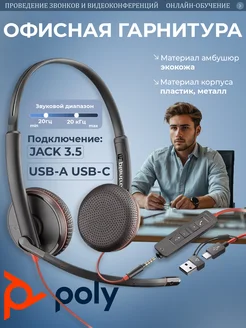 Проводная гарнитура Poly BlackWire C3225, USB-A (+ USB-C)