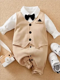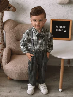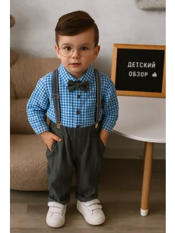 Нарядный брючный костюм с бабочкой и подтяжками