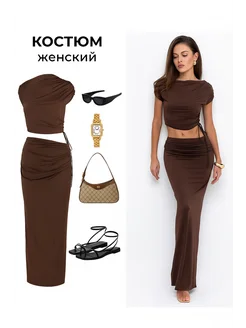 Костюм вечерний с драпировкой и завязками