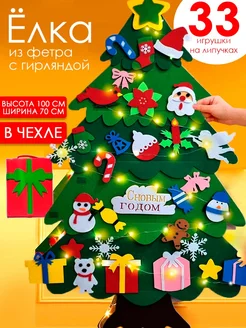 Елка из фетра на стену Новогодняя с гирляндой