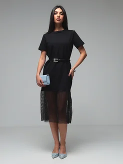 Платье футболка летнее повседневное с юбкой из сетки