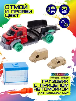 Игровой набор грузовик с прицепом автомойкой для машинок МЧС