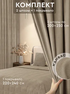 Шторы в спальню для гостиной плотные канвас 200х260 см 2 шт