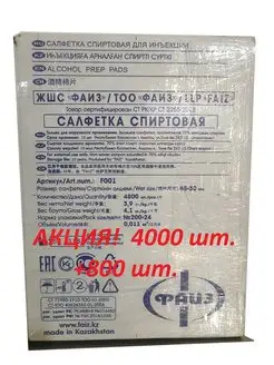 4800 шт. салфетки влажные спиртовые 65х30 мм, 24 коробки