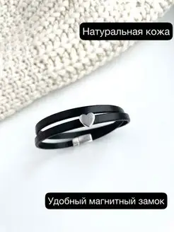 Браслет на руку женский кожаный парный с сердцем
