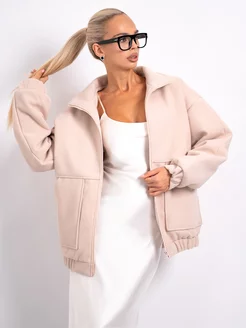 бомбер пальто утепленный оверсайз на молнии драповый