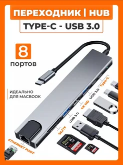 USB концентратор 8 портов, HDMI, Type-C, USB, SD, micro SD