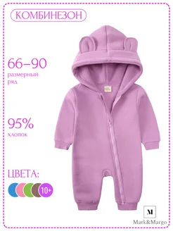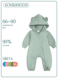 Тёплый комбинезон с ушками на флисе для малышей осень