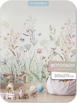 Фотообои Цветы и Лиса в детскую 300х270 см 7 размеров