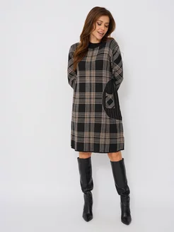 Платье теплое вязаное шерстяное в клетку
