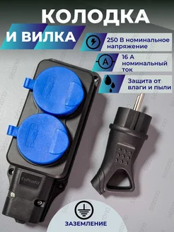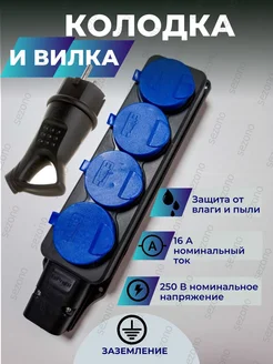 Колодка каучуковая влагозащищенная с крышками + вилка