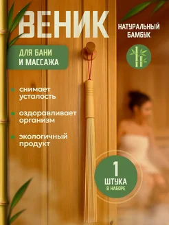 Веник массажный бамбуковый для бани, сауны, парилки 1 шт
