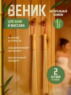 Веник массажный бамбуковый для бани, сауны, парилки 2 шт