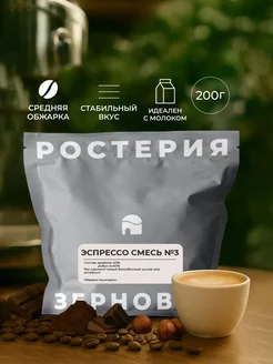 Кофе в зернах 200 г, 40 % арабика, бленд "Эспрессо смесь №3"