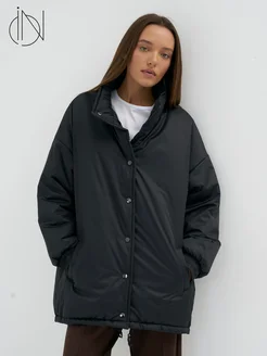 Куртка демисезонная оверсайз черная с капюшоном ICNTPRY