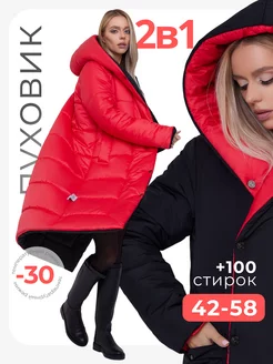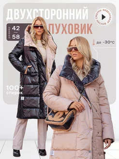 Зимняя куртка двусторонняя с капюшоном длинная