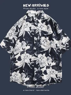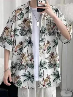Гавайская рубашка летняя с коротким рукавом оверсайз