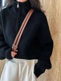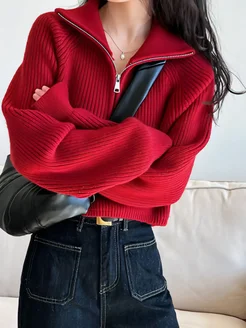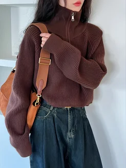 Свитер с горлом короткий на молнии полузамок y2k у2к
