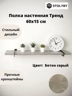 Настенная полка навесная в стиле Лофт "Тренд" 60х15см