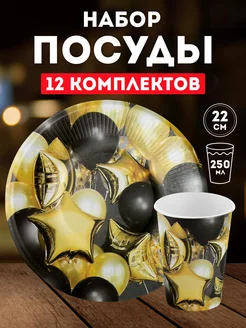 Одноразовая посуда набор на день рождения бумажная черная